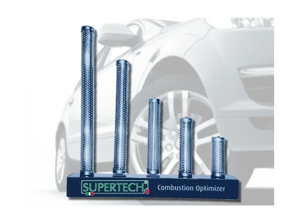 Supertech® es un dispositivo sólido de inmersión que funciona dentro del depósito de los vehículos a tracción de hidrocarburos (gasoil y gasolina), de esta manera optimiza la combustión y logra hasta un 12% de ahorro de combustible, aparte de reducir las emisiones de gases hasta un 80%, haciendo que los costos de mantenimiento de los motores se reduzcan significativamente.